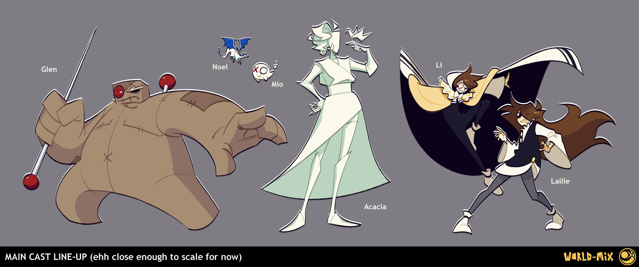 ⚠ WARNING — Themes of the story and art may contain abuse, trauma, mental illness, blood, violence, and death. ⚠ A story conceptualized around September 24th, 2017. Meant to be told through an episodic animated series with three seasons. SYNOPSIS :Lailie finds herself as a foreigner in a new world out to get her, with no recollection of her life before age five. WORLD-MIX isn't particularly fond of outsiders. Nearby, Li and her friends live a much more peaceful life in the forest of Zone 0, Varius. They are hunters in their pastime and have been trying to chase down Lailie for years... Li's shortcomings in her performance have been the scapegoat for their lack of success. While Li, Glen, Acacia, and Noel still follow her tracks, Lailie meets Troi, a foe-turned-friend from Zone 5, Gaia. With a mutual sentiment of being alienated, Lailie and Troi travel the rest of the zones, meeting and battling the Zone Keepers along the way— all with the goal in mind of finding a place where they can belong and call home. While on their travels, they uncover forgotten history in WORLD-MIX, and find themselves getting involved with the business of the god-like Zone Keepers. The cast's goals are met with distractions. Meanwhile, Li and Lailie still have a deep hatred for each other.INSPIRATION : The Girl Who Drank The Moon, Undertale, OFF, Pokemon, me!